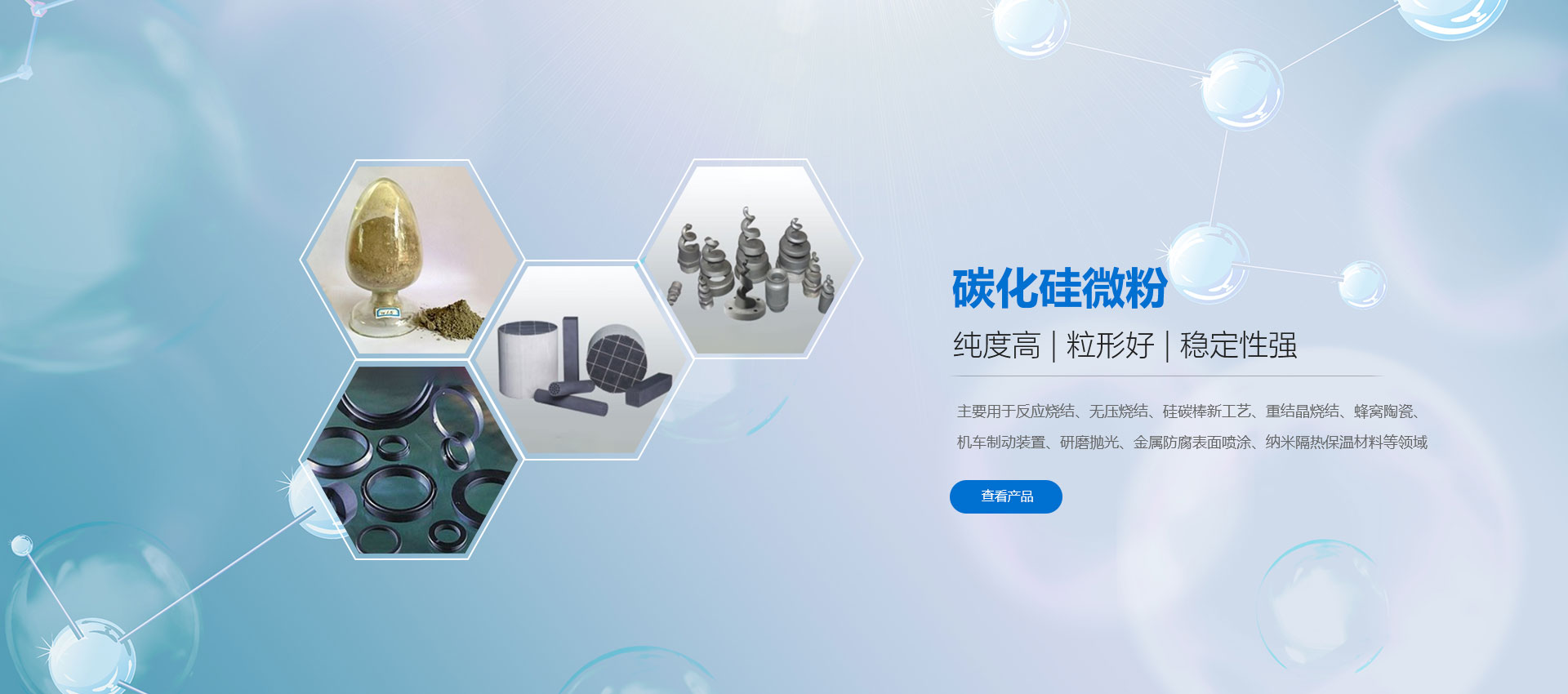 濰坊凱華碳化硅微粉有限公司成立于2002年,國(guó)家高新技術(shù)企業(yè),公司占地40畝,標(biāo)準(zhǔn)廠房19000平方,辦公樓、研發(fā)2000平方,年生產(chǎn)能力3萬(wàn)噸。一直從事陶瓷級(jí)微粉的生產(chǎn)銷售,所生產(chǎn)的微粉具有純度高、粒形好、穩(wěn)定性強(qiáng)等特點(diǎn),主要用于反應(yīng)燒結(jié)、無(wú)壓燒結(jié)、硅碳棒新工藝、汽車尾氣處理(DPF)、納米隔熱保溫、機(jī)車制動(dòng)、防腐涂料、研磨拋光、橡膠樹脂等領(lǐng)域。標(biāo)準(zhǔn)產(chǎn)品有:F240、F1200、W40、W28、W20、W14、W10、W7、W5、W3.5、W2.5、W2、W1.5、W1、W0.5、D3E、5S、100F及整形高密度系列綠碳化硅微粉,廣泛應(yīng)用于燒結(jié)、防腐、研磨拋光、涂腐等廣大領(lǐng)域。